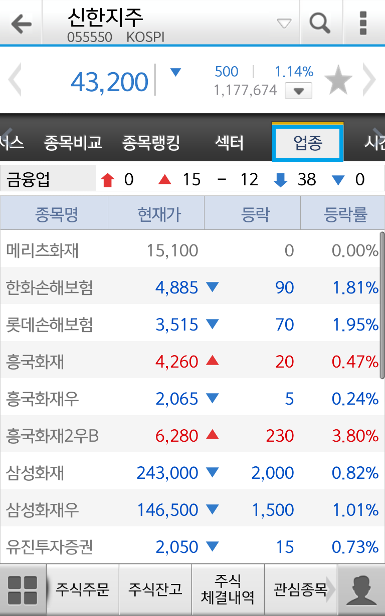 업종 화면 입니다. 관련 종목과 비슷한 다른 종목과 비교할 수 있습니다.