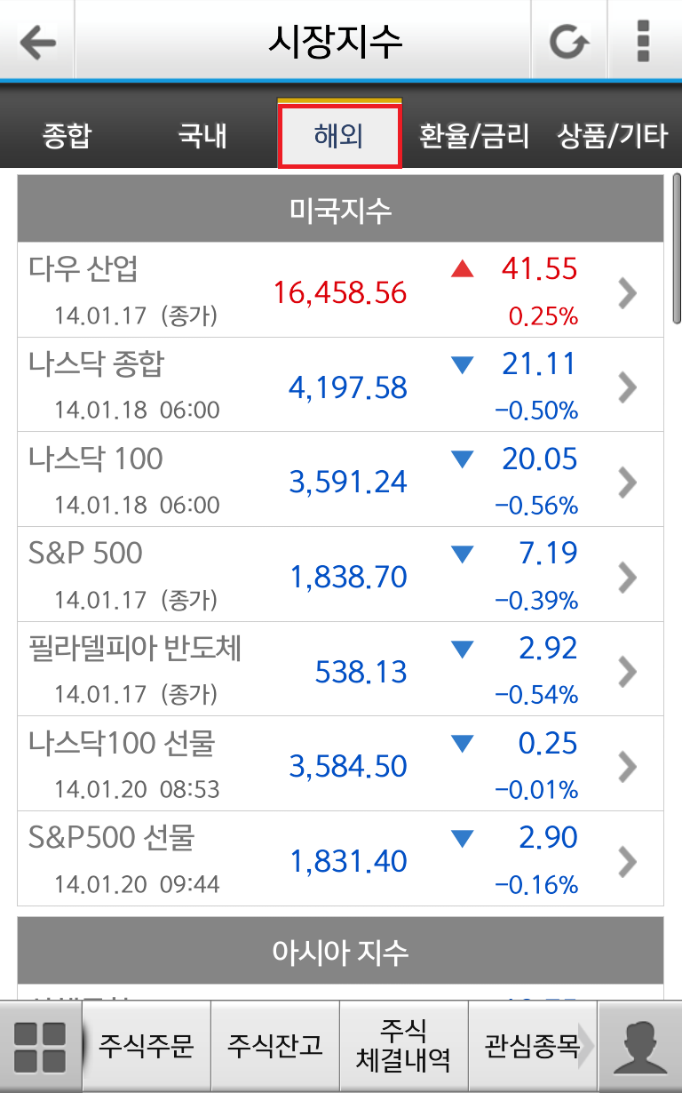 다우 지수, 나스닥 지수 등 해외 지수를 한 눈에 볼 수 있습니다.