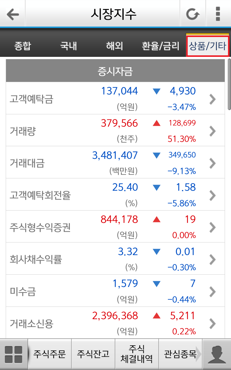 예탁금, 거래금 등 증시 자금 및 상품에 대한 정보를 한 눈에 볼 수 있습니다.