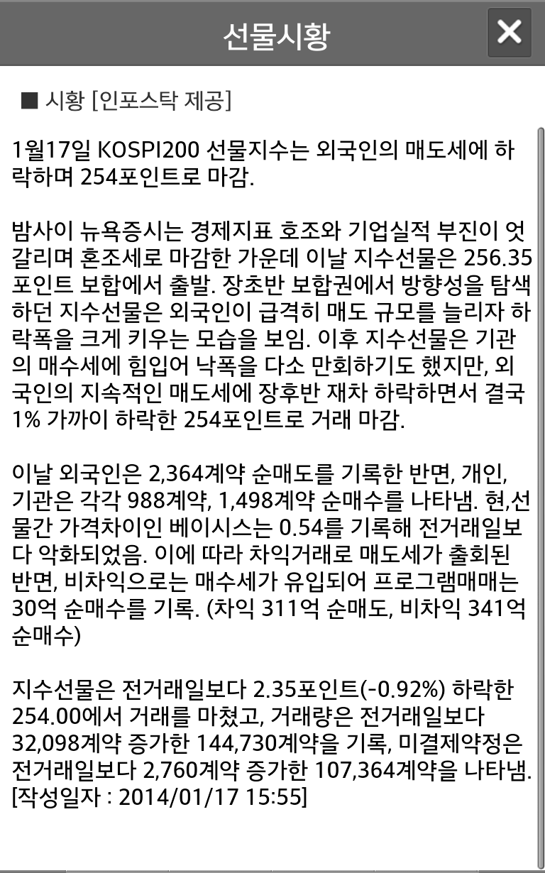 매일 매일 제공되는 시황에 대한 그날 그날의 간단한 내용을 확인할 수 있습니다.