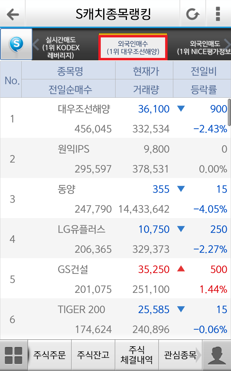 ※ 지금 내 관심종목의 위치는 어느정도 될까?신한금융투자의 또 다른 어플리케이션인 S캐치와 연동 되어 S캐치 종목 랭킹을 인기,보유,신규 등으로 분류하여 제공합니다.