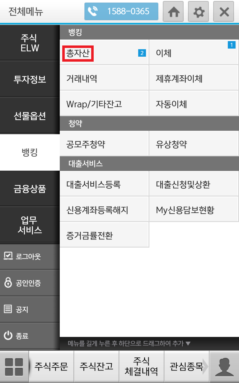 총 자산뿐만 아니라 계좌별, 자산의 종류별로 자산의 현황을 살필 수 있습니다.
