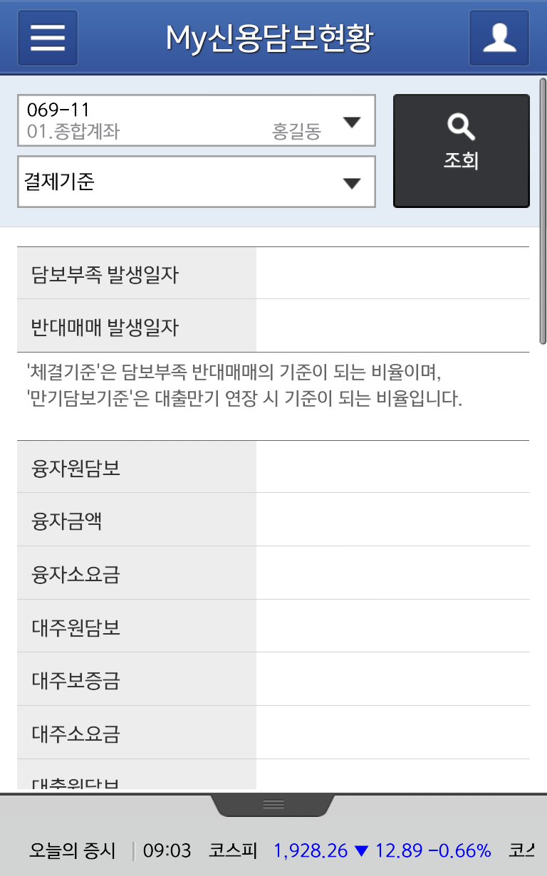 계좌별로 조회를 통해 신용/담보 현황을 확인하실 수 있습니다.