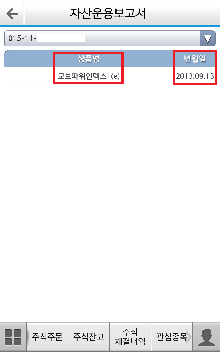 계좌를 선택해서 해당 계좌에서 거래한 상품명과 년월일을 확인할 수 있습니다.